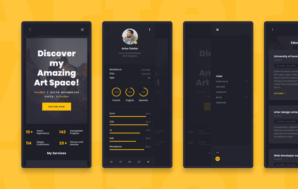 Arter is best suited for freelancers, developers, programmers, designers, coders or any other professions. Creating online resume and CV websites should no longer be a difficult. It is fully responsive, entirely customizable, with a unique web design that will help you win over new clients. Creating a Resume/CV or personal website with Arter is an effective way to promote yourself and showcase your works.